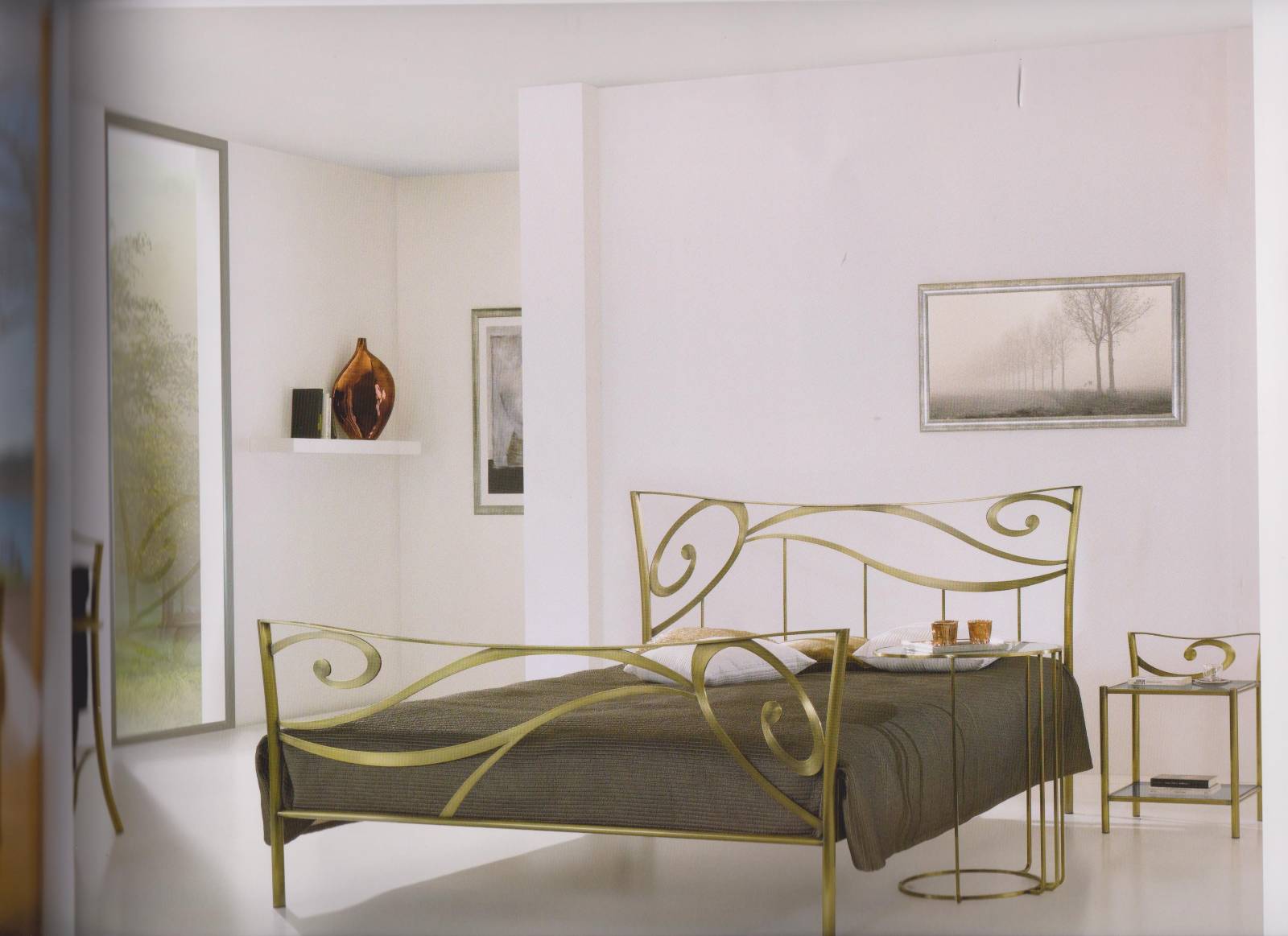 Chambre à coucher romantique ou moderne en métal doré laitonné.