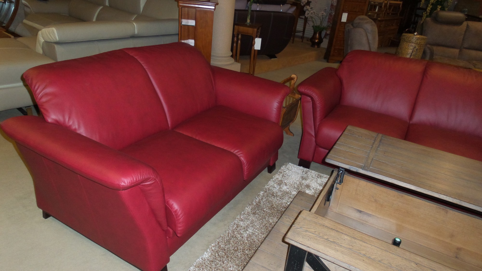 Ensemble de 2 canapés en cuir rouge, modèle E40 Stressless.