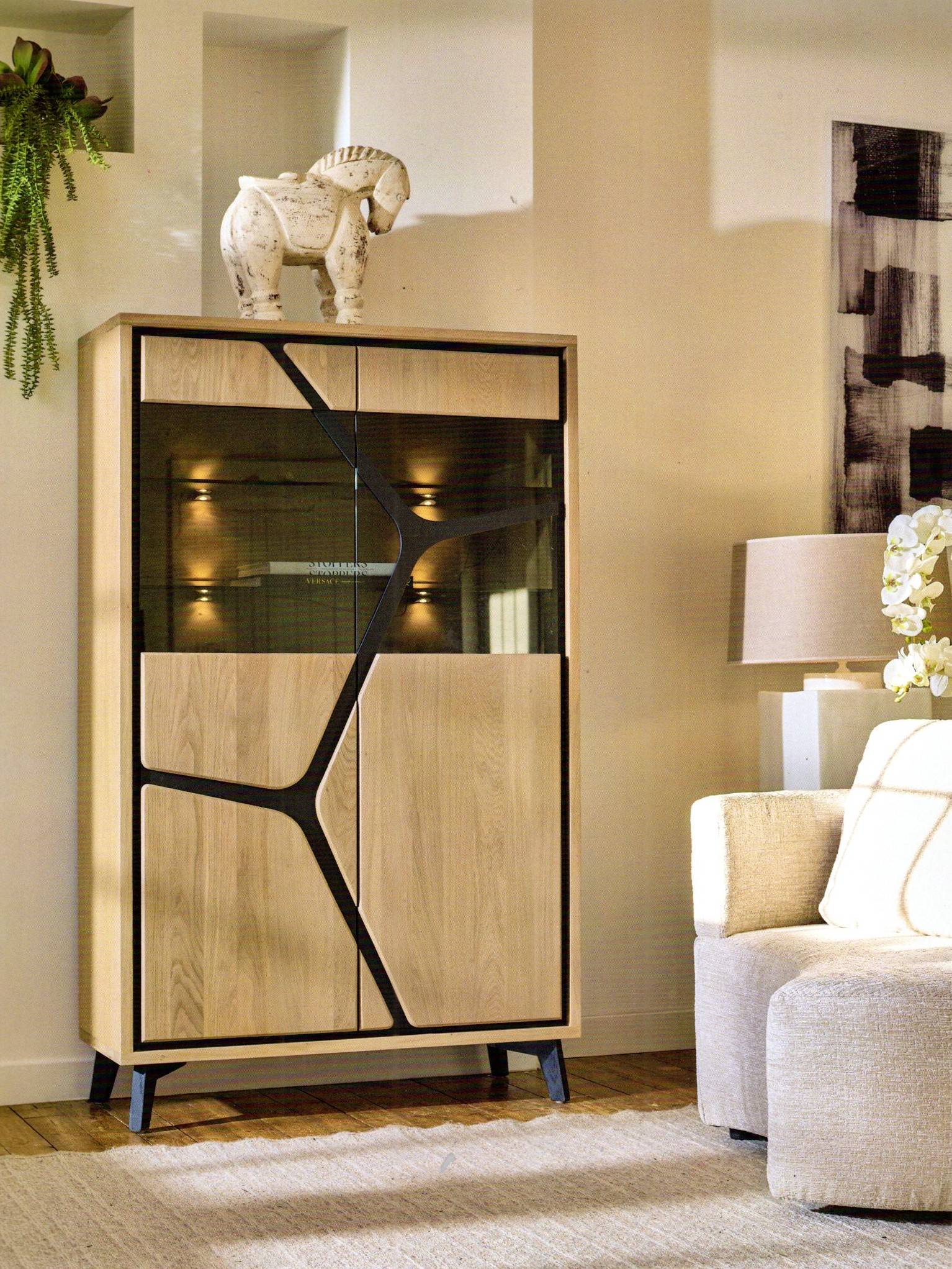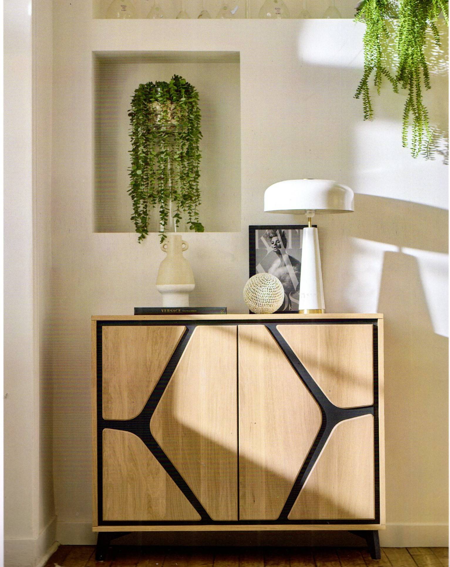 Les pieds des meubles et les panneaux support décor portes sont toujours laqués noir mat.
