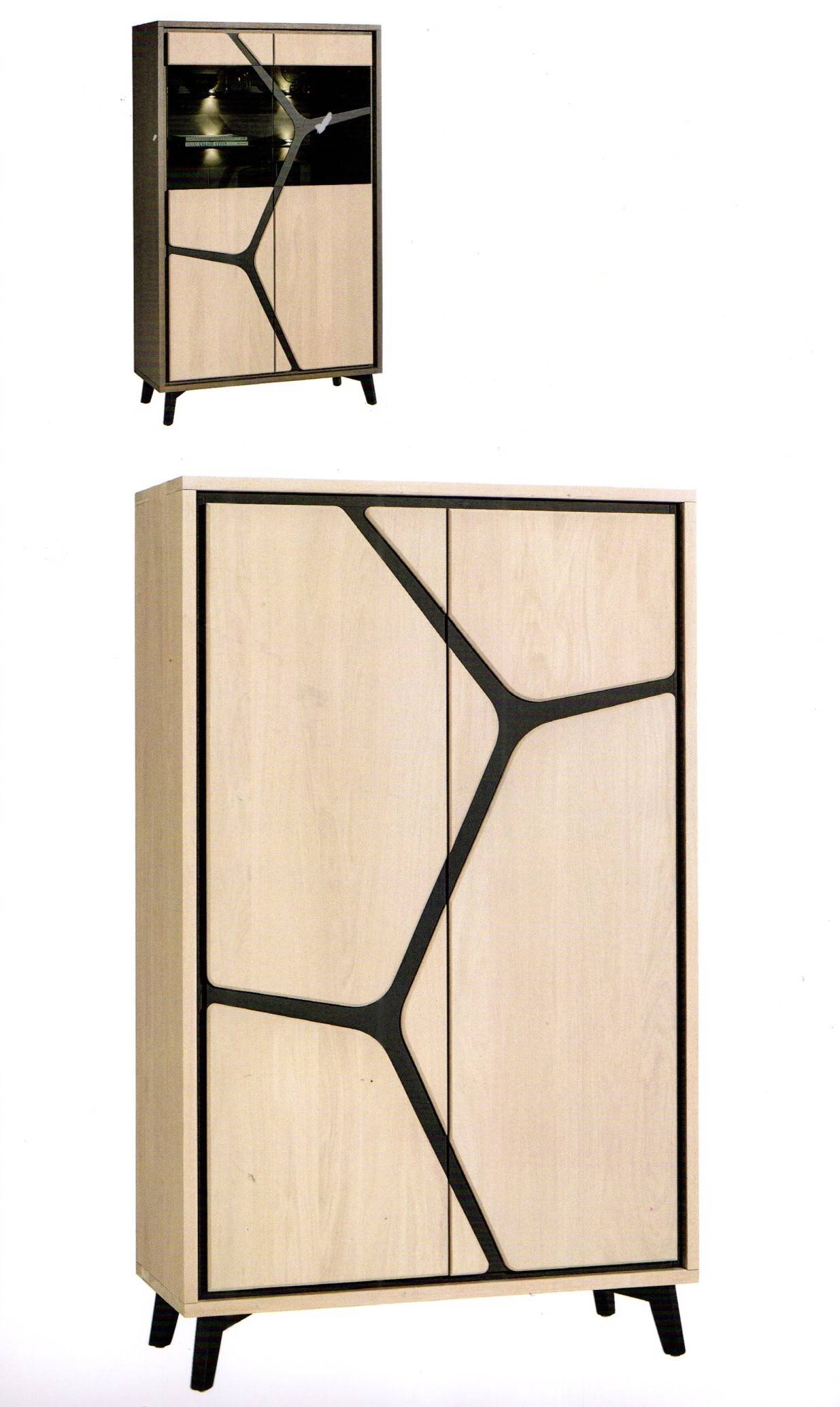 Armoirette 2 portes, vitrine 2 portes, colonne 1 porte pleine en hauteur 170 cm.