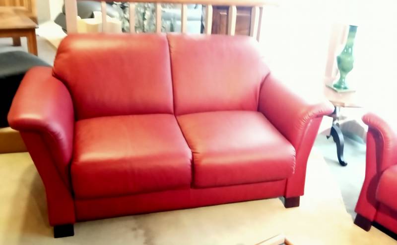 Promotion fin de série à- 60 % sur un ENSEMBLE de deux canapés en CUIR rouge Ruby de chez STRESSLESS, modèle E40 .