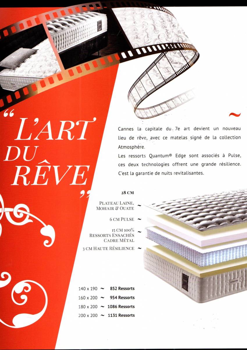 Chez Meubles Abello vous pouvez essayer une literie de la Collection" Atmosphère " qui s'est vu décerner la PALME de L'EXCELLENCE avec le label " Belle Literie Excellence ' Elle répond à des critères de fabrication HAUT DE GAMME, à un choix de matériaux nobles et des techniques de fabrication élaborées ..