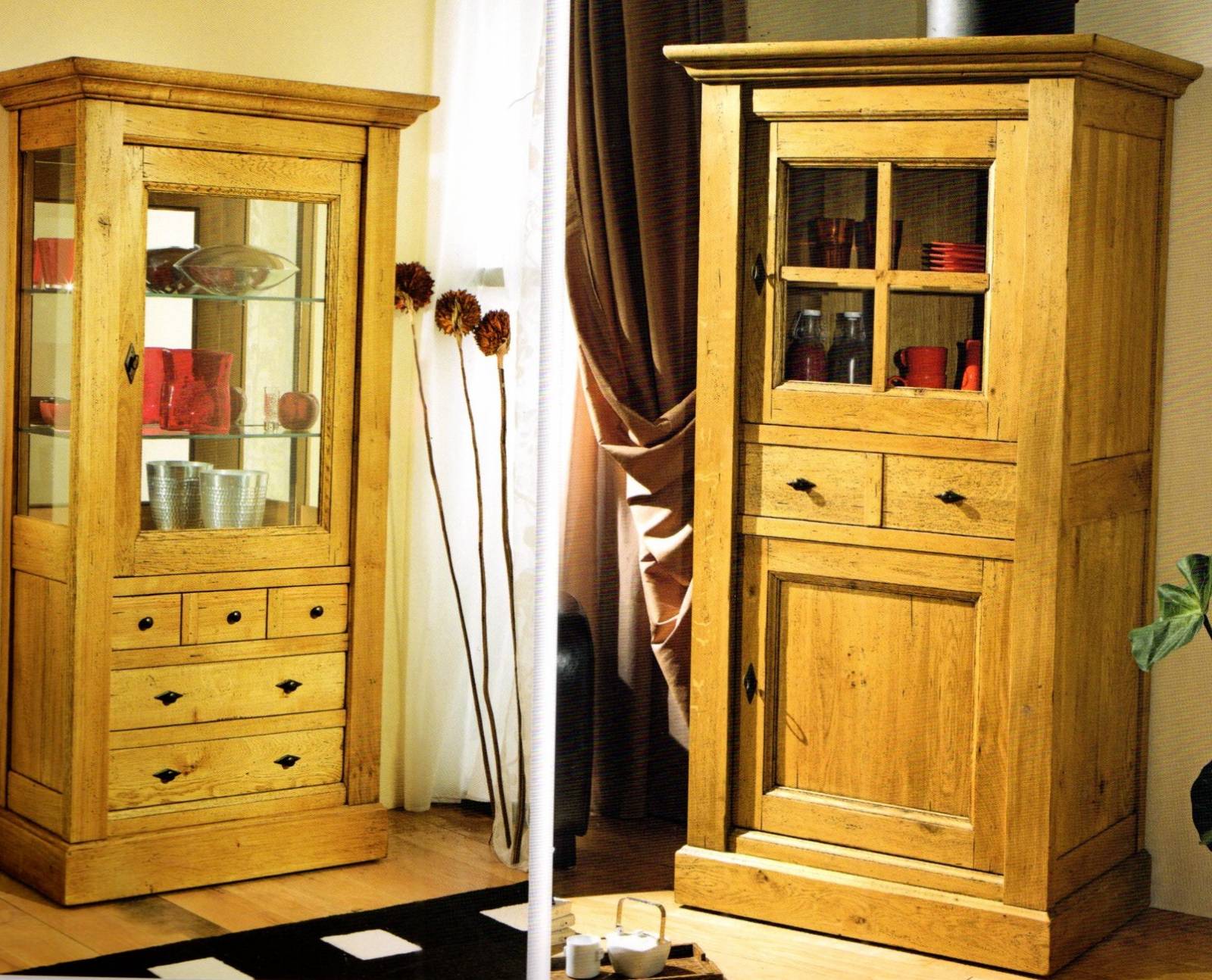 Vitrines en chêne, confiturier campagnard en chêne massif